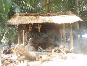 ココヤシが立ち並び、太陽を避ける小屋が、いくつも建っているという。
